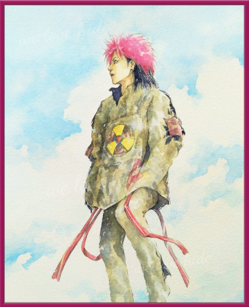 ナナの新作が届きましたー😃 先日の背景画で試した技法で「hideさんを描いてみた🖊」そーです。 影が色っぽい✨✨ とゆーかhideさんご自身が色っぽいんだな✨😆 #hide #透明水彩 #水彩画 #イラスト #illustration