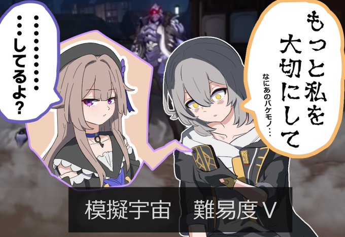 ヴィルヴィとメビウス描きました! メビウスを嫌ってない かつ メビウスがちゃんと認めてるレアな組み合わせで大好き あとブルアカ塗りしようとしてひたすら迷子になりました。 あれムズイわ・・・ #崩壊3rd #崩坏3 #HonkaiImpact3rd
