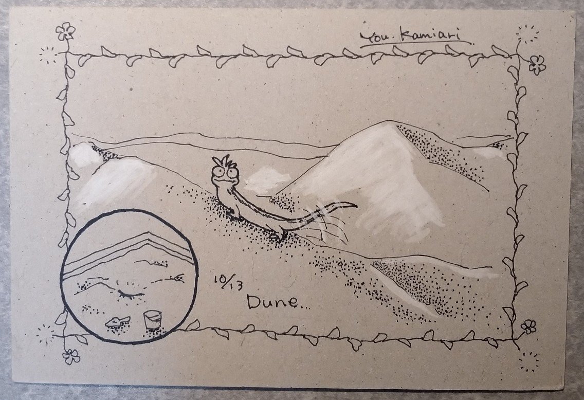 本日のインクトーバーイラスト。 テーマは『DUNE』砂丘です。 余談ですが昨日映画を観る前の予告編で 『DUNE 砂の惑星』をやってました。面白そうです☆ 砂丘?らしさを出すため 紙は段ボール紙の裏。あいかわらず雑(笑) #inktober #inktober2020day13 #inktober2020dune #砂丘 #アナログイラスト