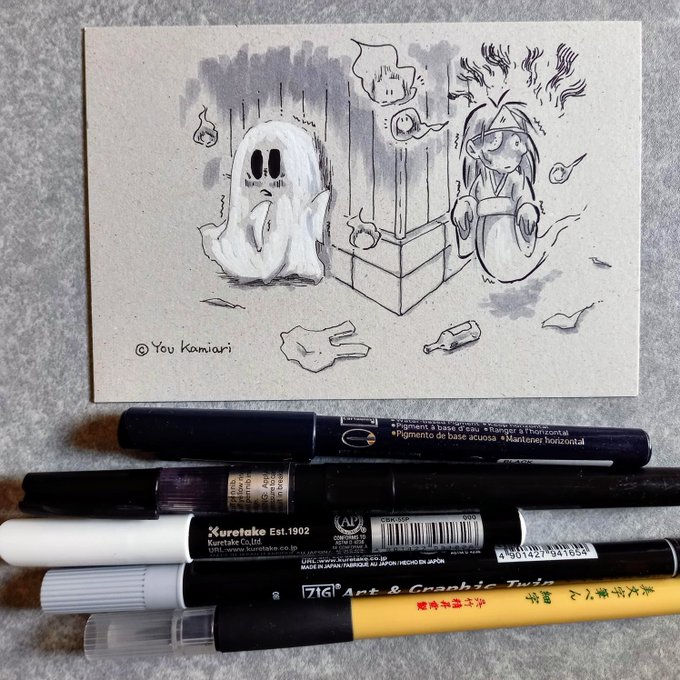 本日のインクトーバー作品更新☆ テーマは『精神(spirit)』 他に『幽霊』の意味もあったのでそちらにw 和と洋の幽霊対決…!? #kuretake_inktober #kuretake_inktober2021 #inktober #inktober2021 #inktober2021day6 #inktober2021spirit #インクトーバー2021 #インクトーバー #spirit #幽霊