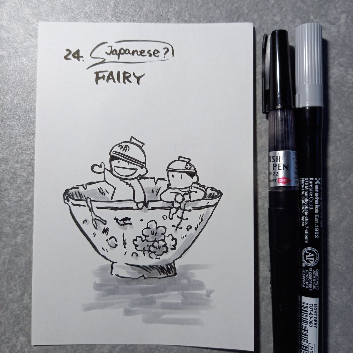 24.FAIRY 日本の妖怪が妖精という説(笑) これは古いものが妖怪化した 『付喪神』…のつもりw …少し中華入ってる!? 今日のところはこんな感じで☆ #inktober2022 #kuretake_inktober2022 #インクトーバー2022 #fairy #妖精 #アナログイラスト #illustration