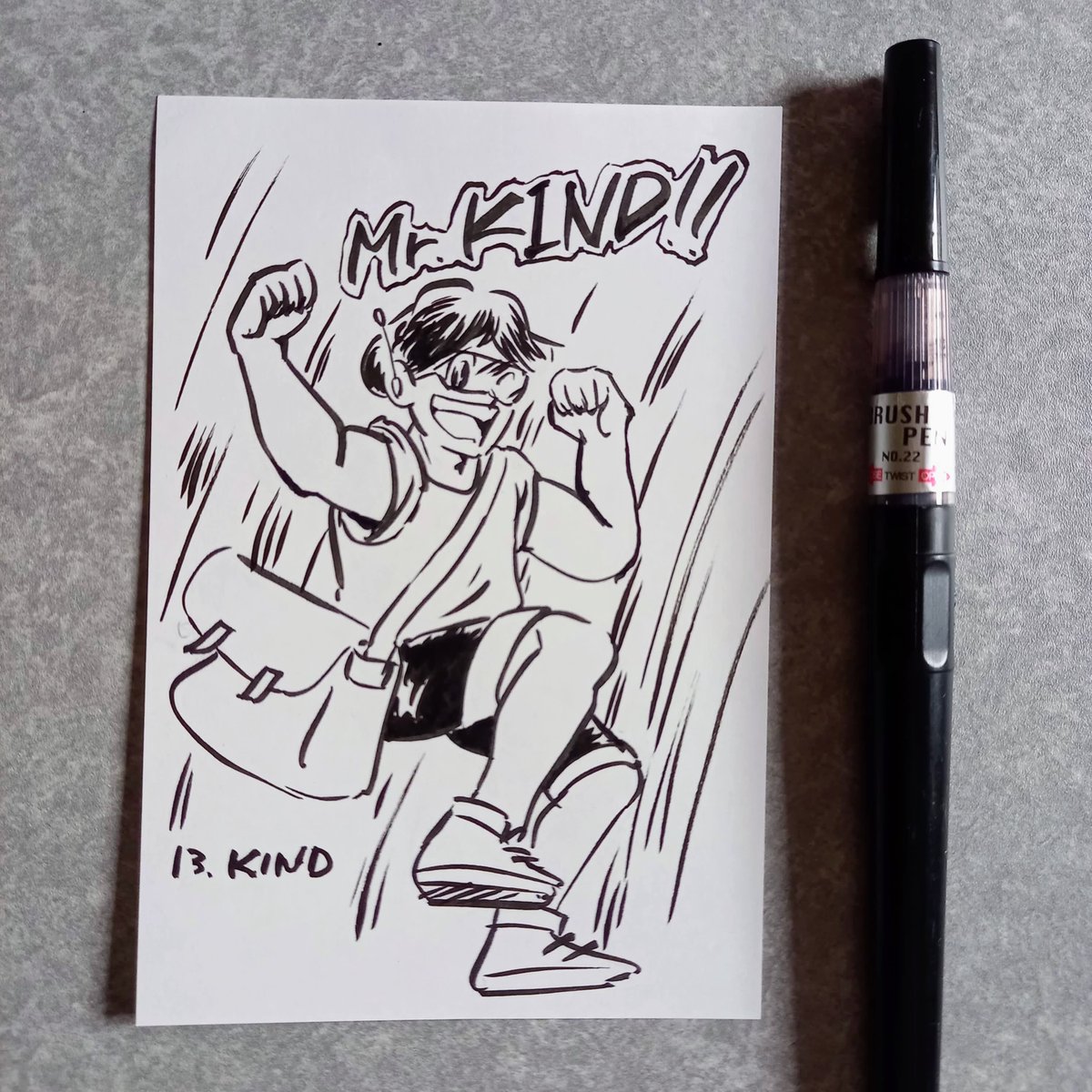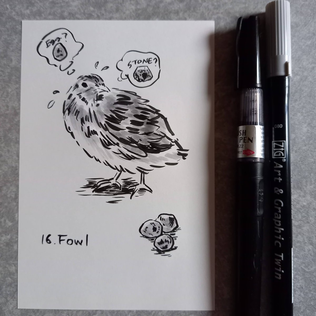 今回は一気に投稿! 13.KIND 親切モットーのヒーロー(笑) しかし見た目が胡散臭いw 14.EMPTY ありがちなネタ(笑) 15.ARMADILLO ほんわかパターン☺️ 16.FOWL ウズラ(QUAIL)です。 #inktober2022 #kuretake_inktober2022 #インクトーバー2022 #kind #empty #armadillo #fowl #quail