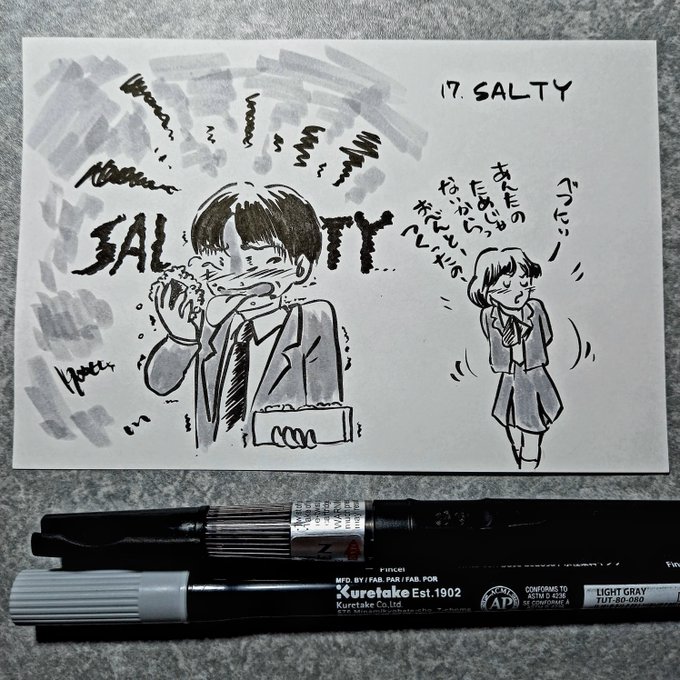 今日のお題『SALTY』 ネタが出ず悩みました… で、こういう形に落ち着きましたw ああ、しょっぺぇネタ(泣)💦 #inktober2022 #kuretake_inktober2022 #kuretakeinktober_giveaway #salty #illustration #イラスト #アナログイラスト #インクトーバー2022