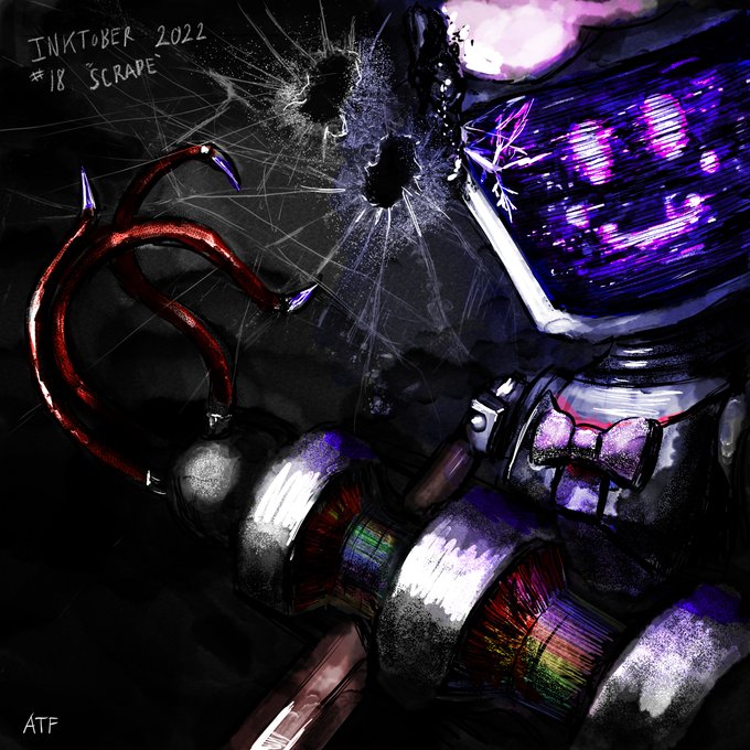 Had some technical issues so playing catch up again. Here is the drawing for the 18th, "Scrape". They missed him but it is not gonna make the same mistake. #inktober2022day18 #scrape #inktober #clipstudiopaint #robot #horror #surpriseparty