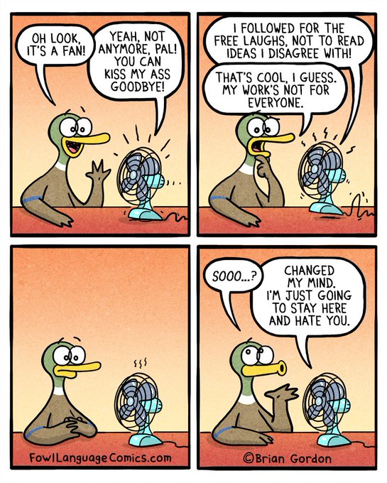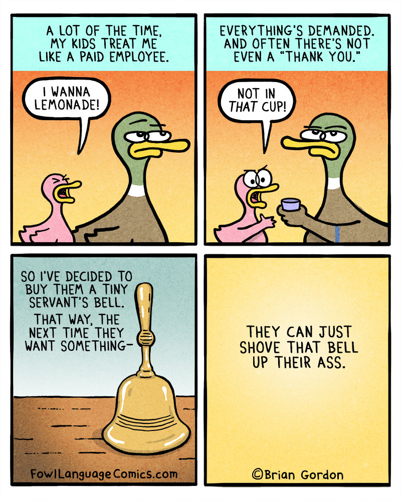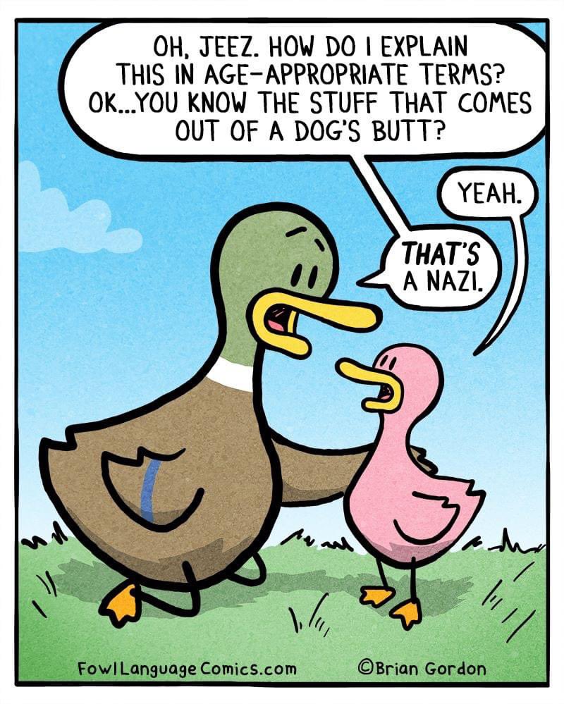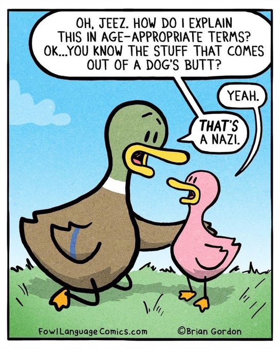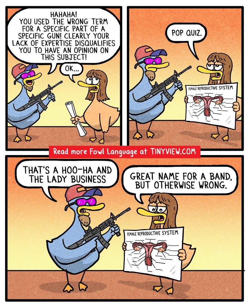 Figured I'd throw this out there since there's loads of cropped versions of this cartoon going around without credit and without the funniest bit at the end. Kindly share and follow me on tinyview.com/fowl-language so I can pay my many bills. (Please?)