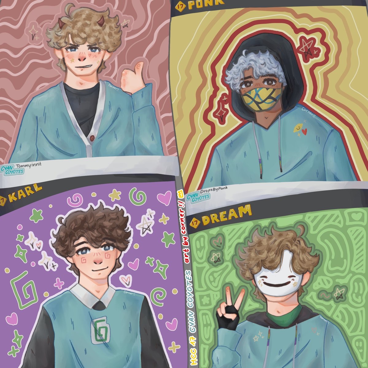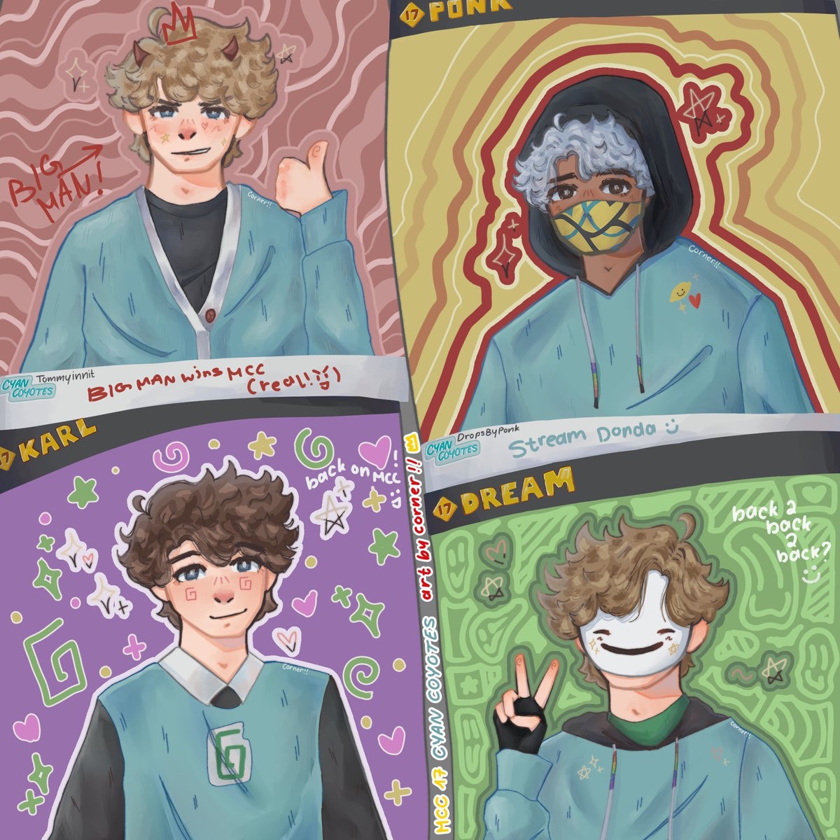 // eye contact , bright colours cyan coyotes winners pov..?👑 -> rts and interactions super appreciated <3 #mccfanart #tommyinnitfanart #ponkfanart #karljacobsfanart #dreamfanart