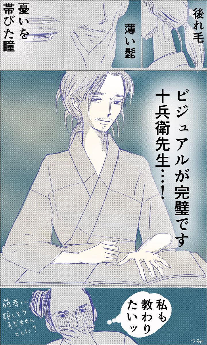 10 81 #麒麟ワンドロ #麒麟絵 きっとネタ沢山被っちゃうと思いますが 「先生」といわれたらもう越前の頃の十兵衛先生のビジュアルで頭がいっぱい… 構成15分、作画に1時間でした 21/06/20 21:18