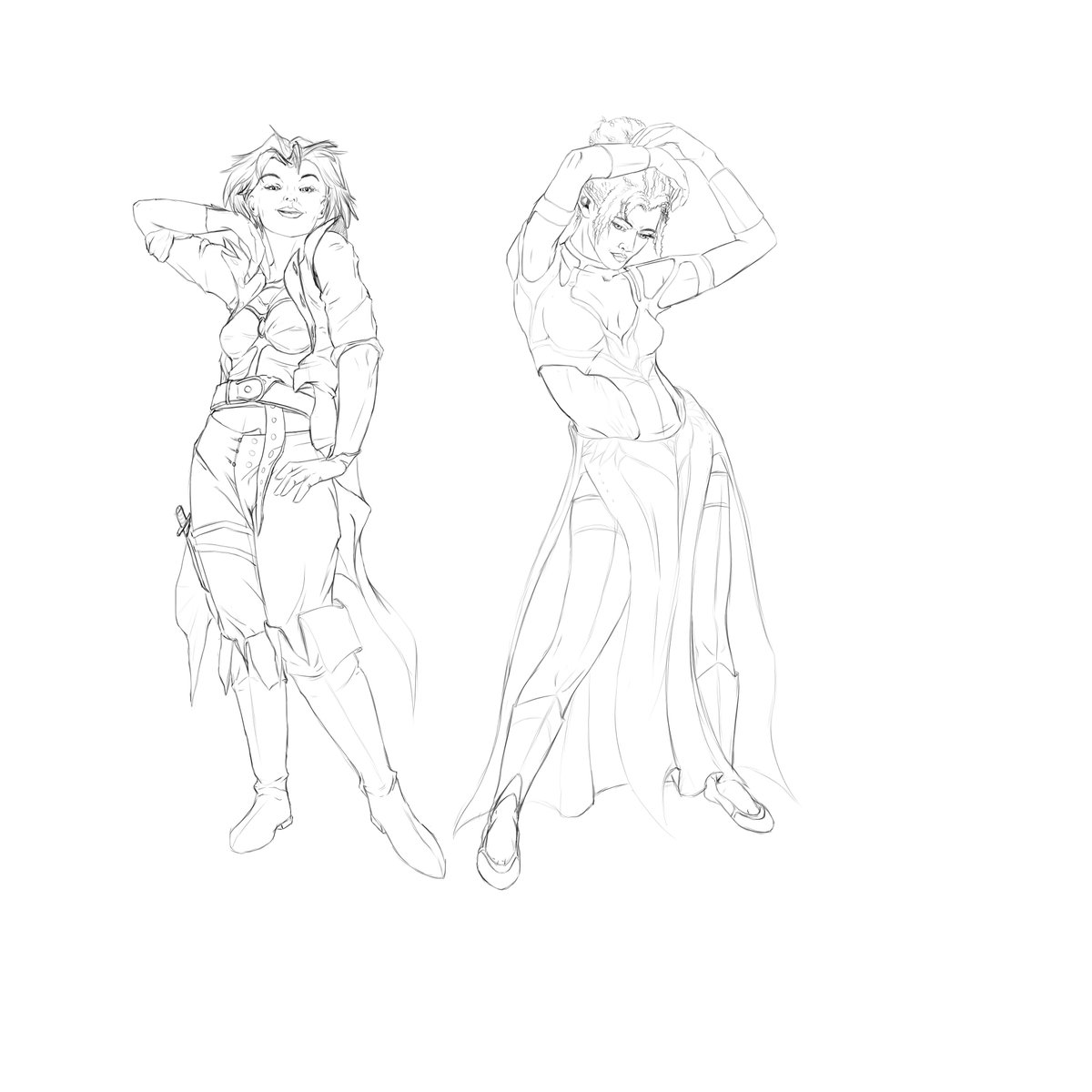 Tonight's sketchyness during the #criticalrole stream! Nareen (NPC) and Leeath (my OC), bff's in the POTA campaign! #dndart #sketching #princesoftheapocalypse #fragjacks