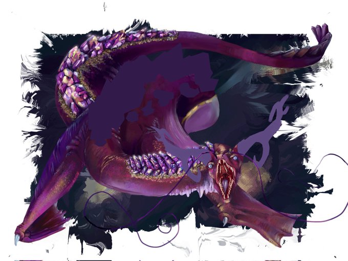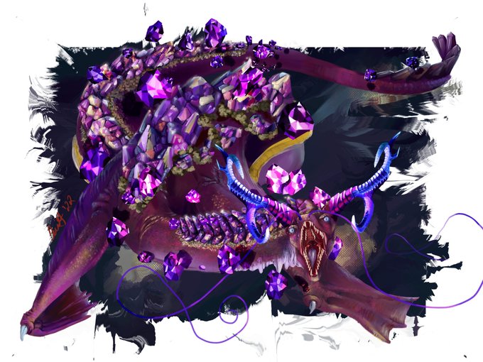 Gems gems gems! Amethyst is done. #dragonart #dndart #homebrew #Commission #commissionsopen #fragjacks #dragons #amethystdragon 1/11