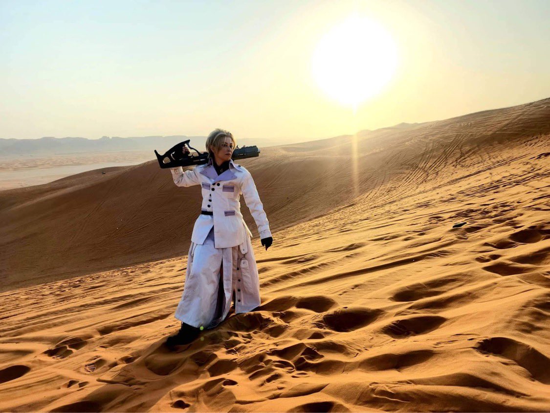 【コスプレ注意】 FINAL FANTASY VII REMAKE ルーファウス神羅 Rufus Shinra :FRAN 📸:@amadocrafts 砂漠ツアーの同行者からステキなお写真いただきました〜!出発までの10日間、睡眠時間削って衣装間に合わせた甲斐がありました!ありがとうございました😭🙏💖✨ #FRANアラビア半島ツアー