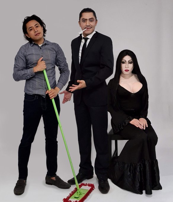 In and out of cosplay/crossplay in one photo. #addamsfamily #cosplayer #cosplay #pinoy #addamsfamilycosplay #comiconathome #DragRace #crossplay #transformation #ComicCon #lockdowncosplay