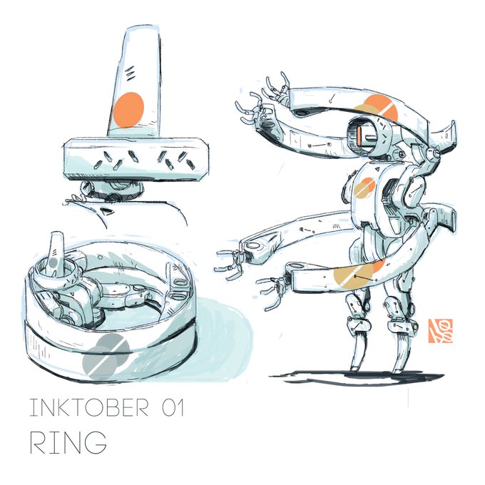 Inktober 01 2019 - RING BOT (also known as kids pool bot) #inktober #inktober2019 #digitalart #robot #mech #illustration #conceptart #cyberpunk #artistsontwitter