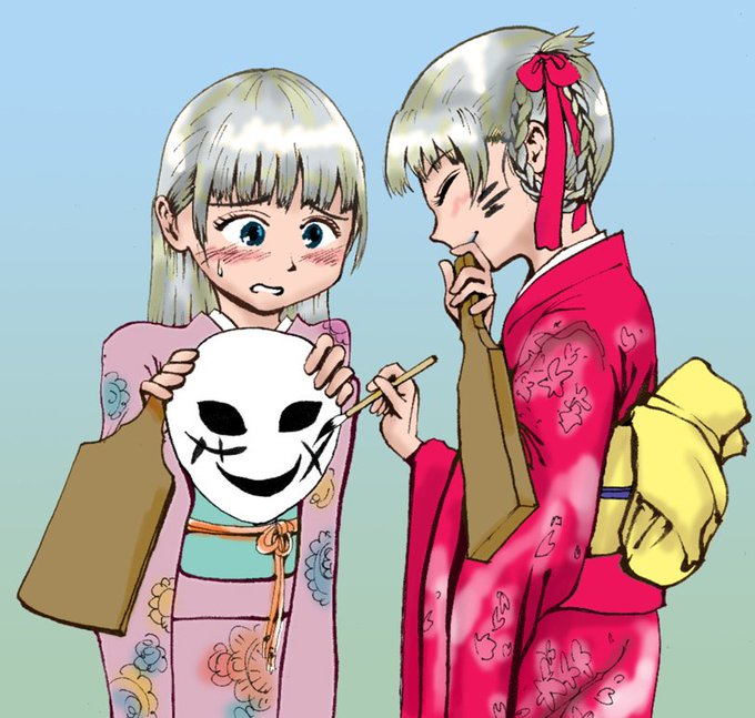 ふふ。さぁ、次何のギャンブルをしようか?(resend) #新年 #pixiv今日のお題 #賭ケグルイ #桃喰綺羅莉 #桃喰リリカ #双子 #羽根突き #new_year #kakegurui pixiv.net/member_illust.…