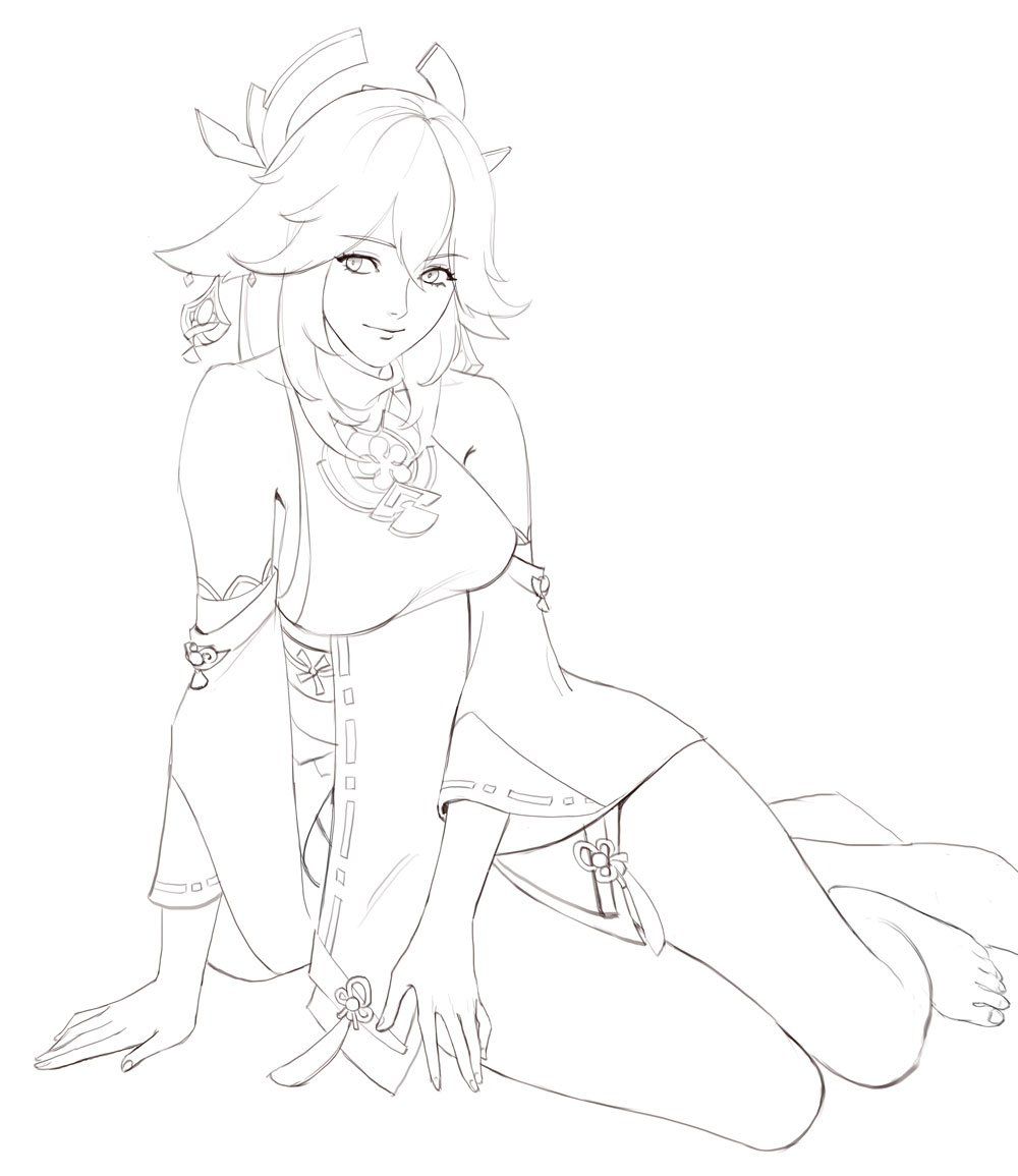 Moth. Sketch & final. #シニョーラ #Signora #GenshinImpact #原神 #Genshin #LaSignora #illustration #イラスト #genshinimpactfanart