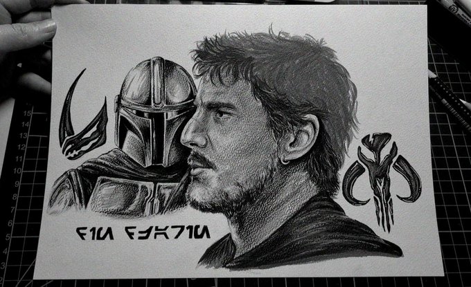 My art teacher once said: You won't get far using the same material over and over again. 🥱 Look at me thriving with my one black pencil for years now 😂😤 #art #TheMandalorian #DinDjarin #Fanart #drawing #PedroPascal #starwars