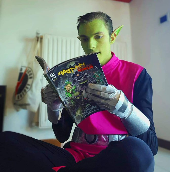 Beast Boy reading Batman vs TMNT What's the best comicbook crossover in your opinion?💚 #TMNT #beastboy #TeenTitans #beastboycosplay #DC #crossover #Batman #cosplay
