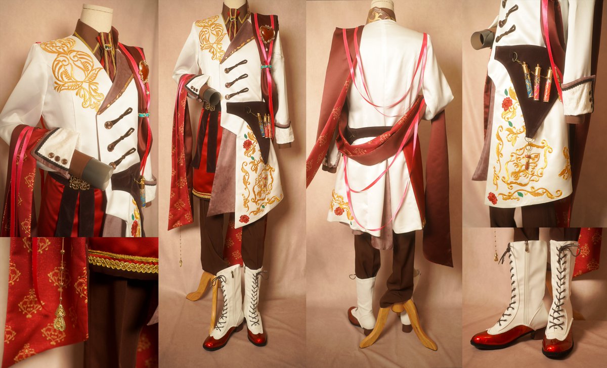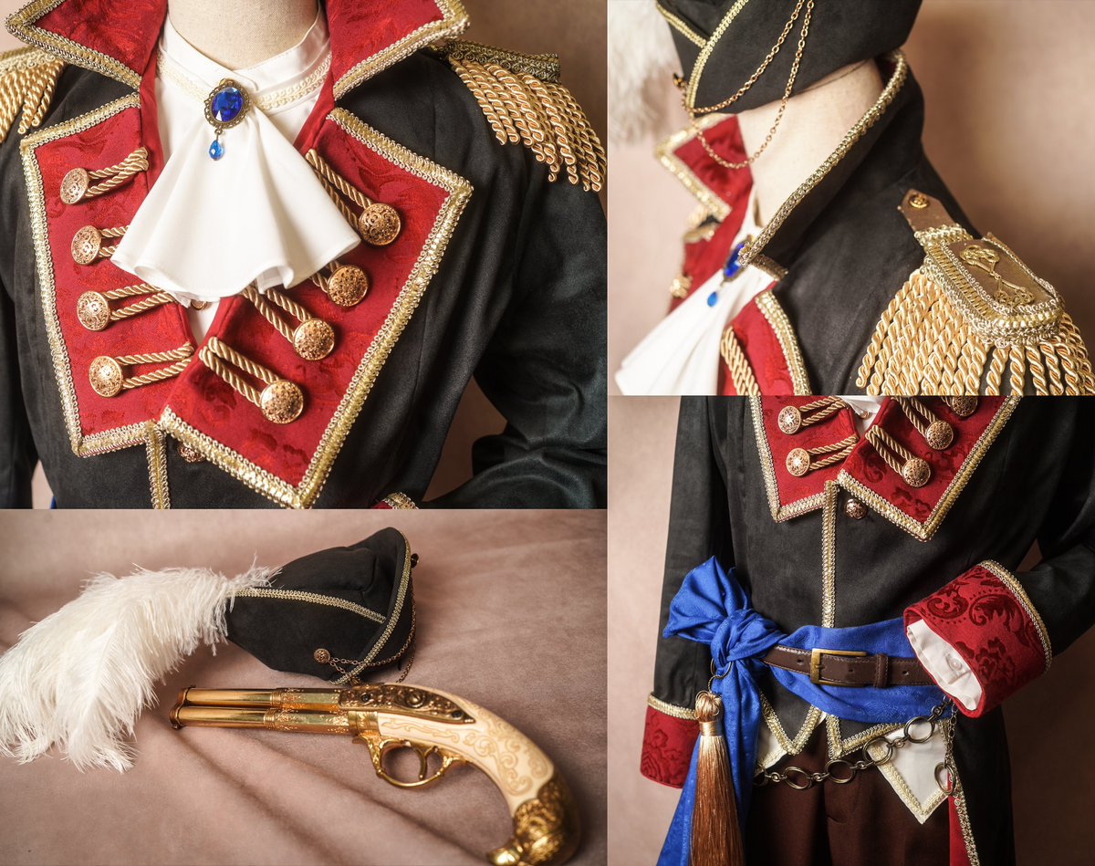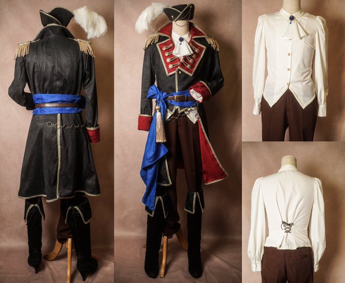 シー・ローバー・スクアーマ アーサーの衣装完成しました! 海賊らしくスエード地をメインに、キャプテンなのでブレードや肩章、ボタン等を豪華にしました🏴☠️✨ シャツの背中とブーツ後ろにこっそり編み上げがあるのがこだわりです☺️ #まほやく_cos #FLADY衣装制作