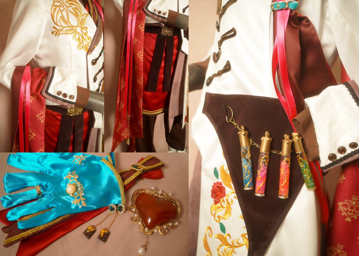 夢幻の城のコンフィズリー オズの衣装が完成しました! 造形パーツはりょうさん(@ryo_ory1 ) 肩の襷はてらさん(@tera__cos ) が作ってくれて、3人の合作です🙌💓 みんなでお揃いの布で作ったのでとっても可愛い🥰 #まほやく_cos #FLADY衣装制作