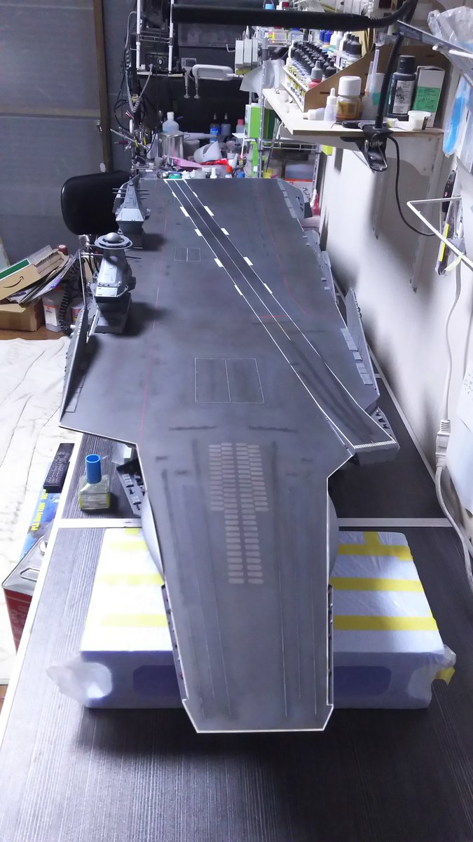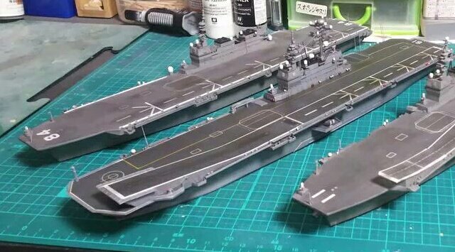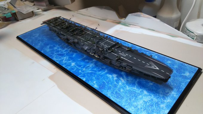 過去作です 空母加賀IF仕様 ミッドウェー海戦をかろうじて生き残り、修理の際に未来から来た高雄型巡洋艦に似た艦の人間からの技術提供を受け魔改造された艦です #ゴールデンウィーク空母祭り #艦船模型 #架空艦
