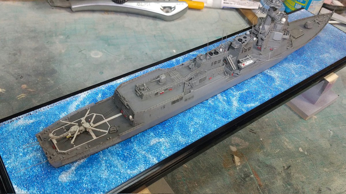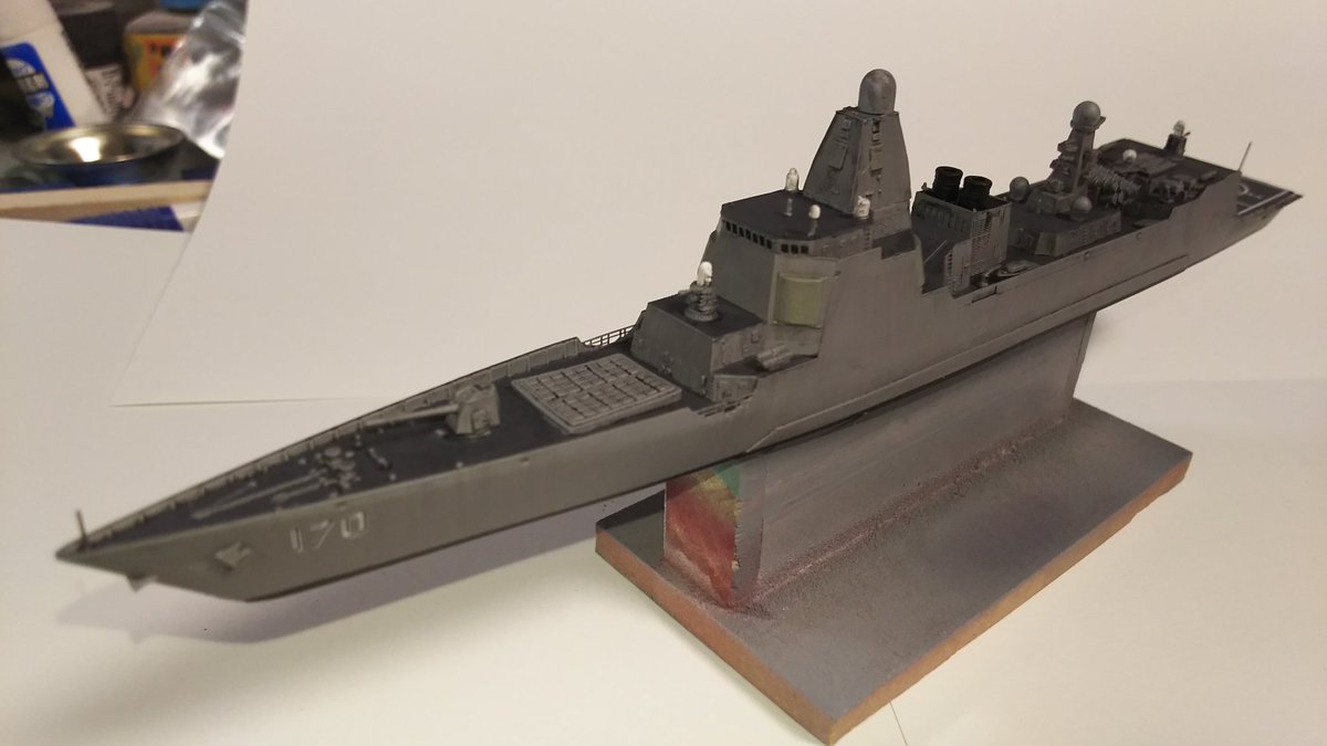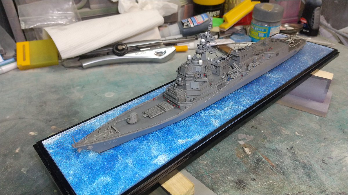 #今月作ったプラモ晒そうぜ #架空艦 たかお型イージス護衛艦一番艦 DDG-170たかお 地元のプラコン作品として作りました 設定としてイージスシステ厶搭載艦をイメージして作りましたが、今日公表されたサイズよりは小さいです(全長189.7m,幅21.0m)