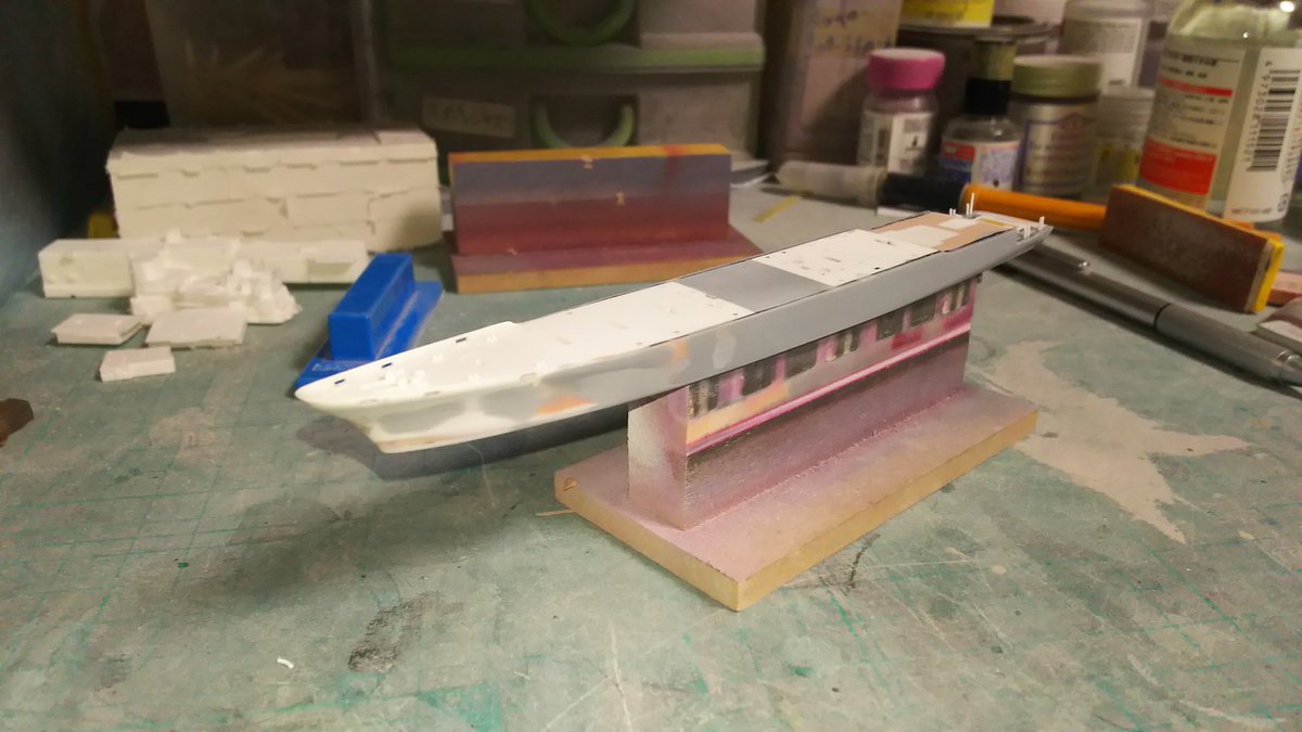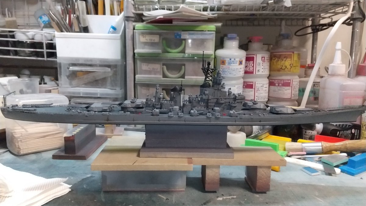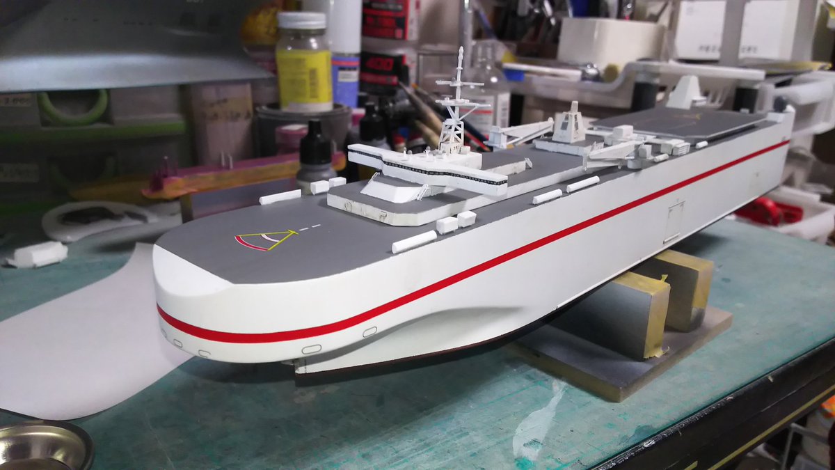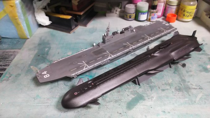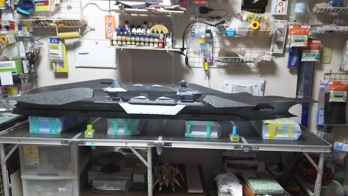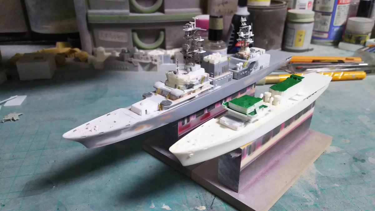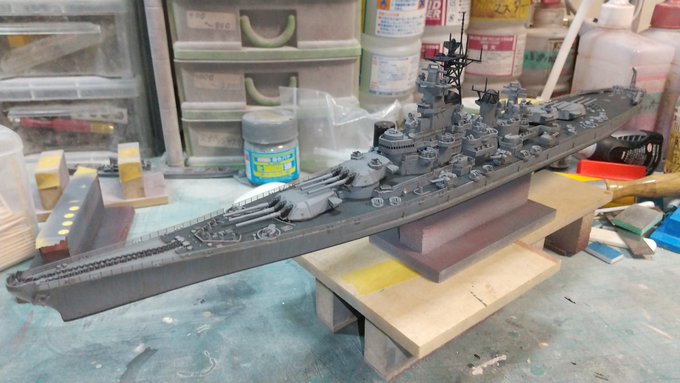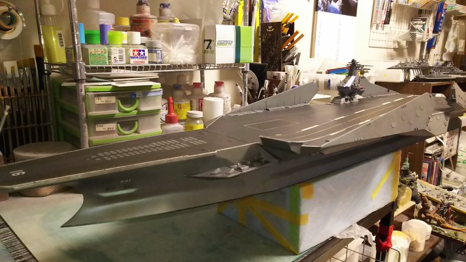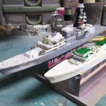 #4月になったのでフォロワーさんに自己紹介しようぜ メインは1/700艦艇模型、次にNゲージ(新京成風ウソ電)、たまに航空機です 現在は超巨大艦を建造中 #架空艦 #ウソ電 #架空機 #第4世代強襲制圧艦建造計画