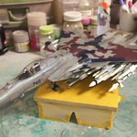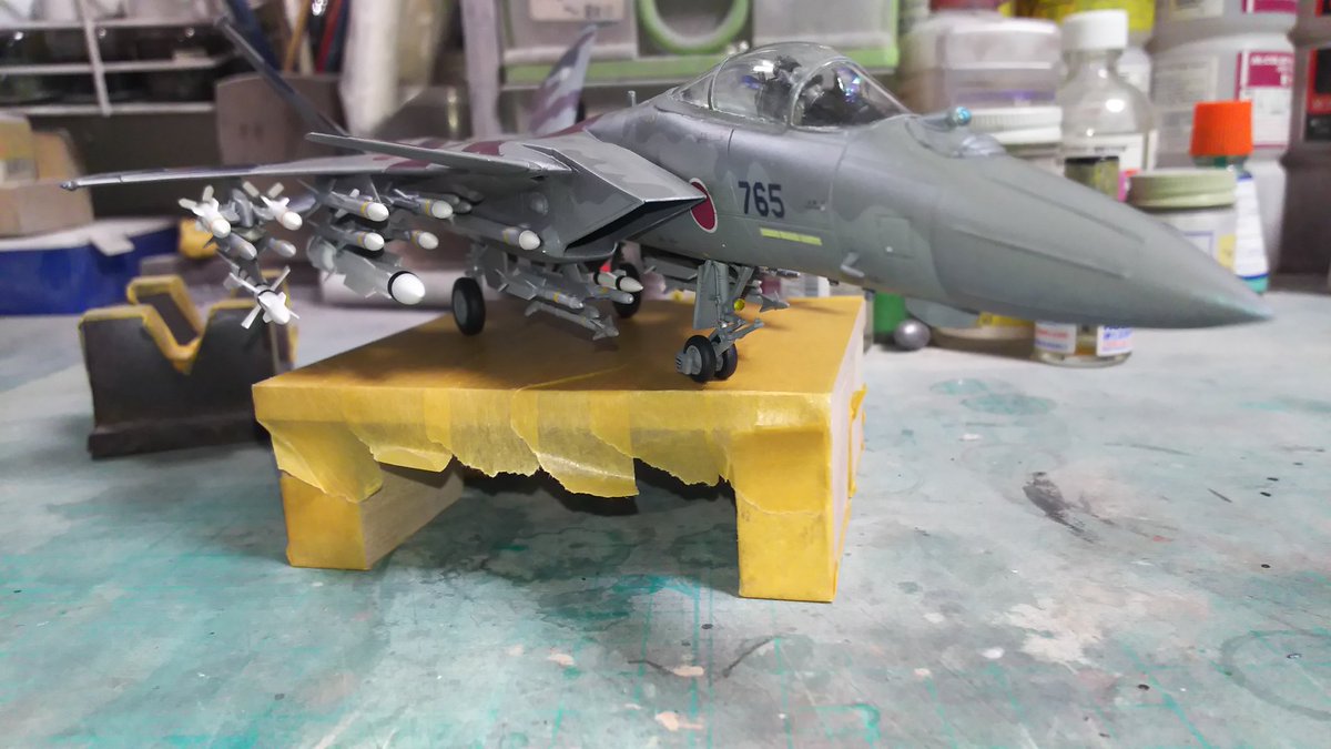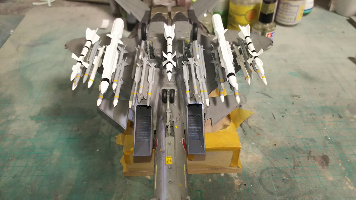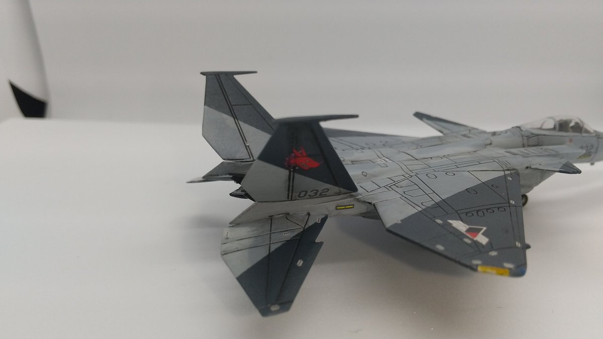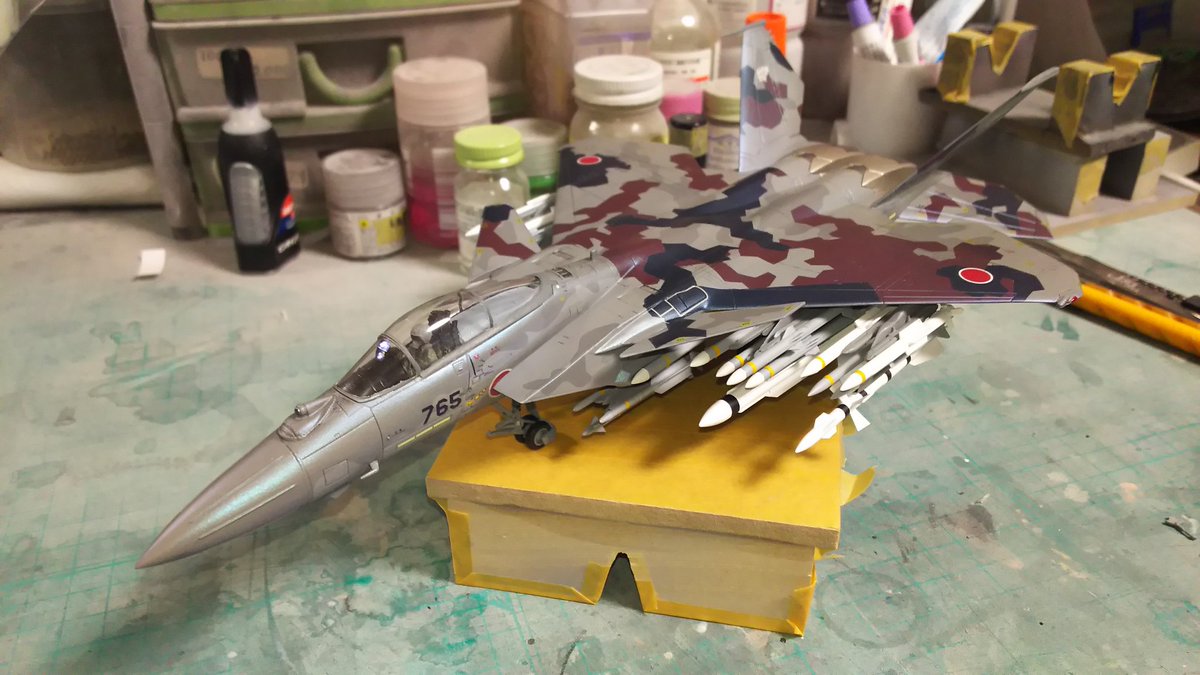 昨日完成した機体 F-15J改 イーグルプラス アーセナルバードモード ミサイルを計35発搭載 機体自体は当艦隊の艦載機仕様の為前脚は改造、マーキングは自衛隊へ出向している設定にしました #架空機 #今月作ったプラモ晒そうぜ