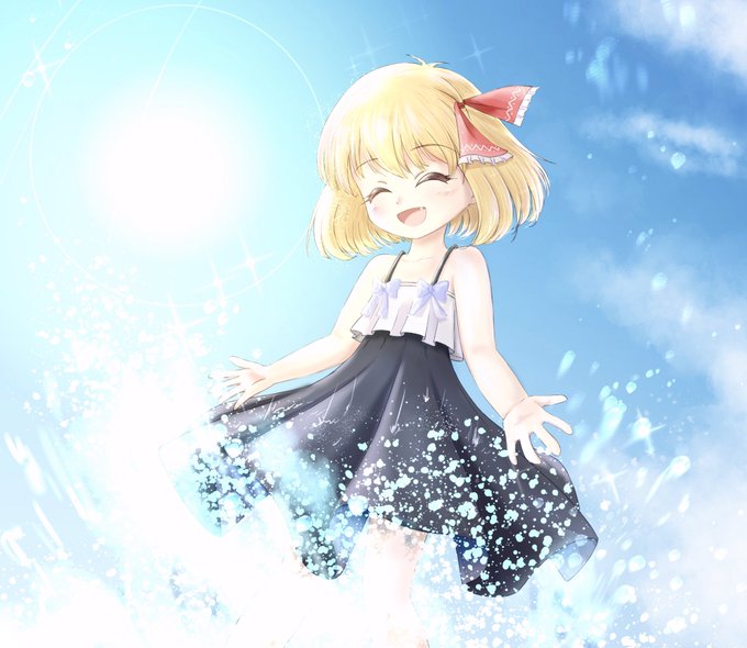 51 141 #毎月七日はルーミアの日 #東方Project 夏の日に水辺で遊ぶルーミア。闇の中にいれば暑さは気にならないけど友達との水遊びも夏の風物詩と楽しむのだった 22/06/07 00:02