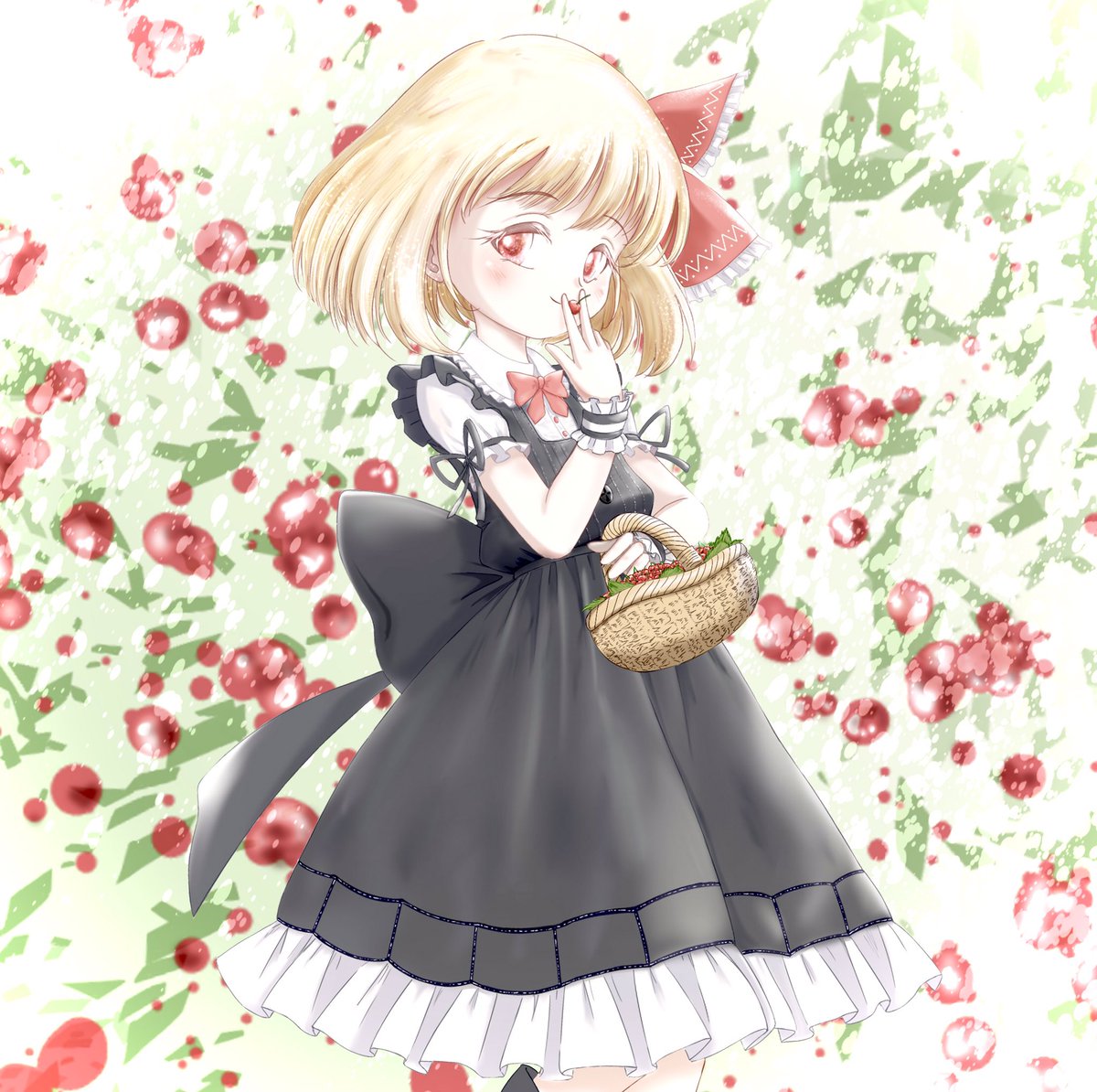 37 175 #毎月七日はルーミアの日 #東方Project 5月のルーミアデーのテーマは、さくらんぼ。花言葉は「上品」「幼い心」そして……「小さな恋人」 22/05/07 15:19