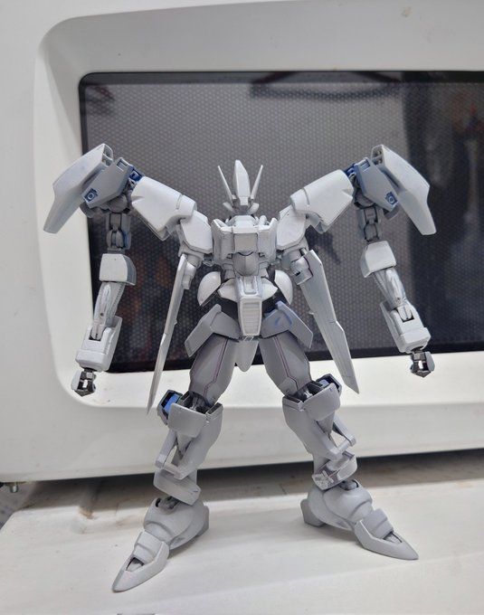 昨日の夜中テキトーにパーツ組んでいたエアリアルさんですが、思いのほかまとまったのでちゃんと塗ろうかなと思いました(笑) 逃げれば一つ進めば二つ! 二振り構えて六道輪廻の修羅の道! 水星の魔女剣豪見参!(笑) #ガンプラ #水性の魔女