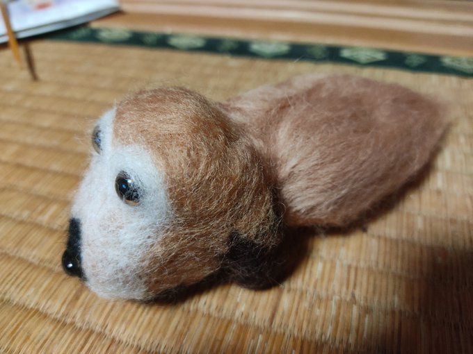 昨日はムム誕にたくさんのコメや👍ありがとうございました☺️ 祝福や励まし皆さん優しい Twitterやっていて良かった🥲 🌈からムムさん喜んで尻尾ブンブンで走り回って匍匐前進してると思います👍 そんな思いを込めて入念にムム2号快調制作中です☺️ #羊毛フェルト 今度はじっくりと完成で😉