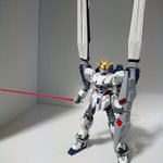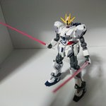 #ガンプラ #ナラティブガンダム ナラティブガンダムB装備完成‼️筆塗り全塗装です。外装は光沢噴いてます。白色のみパールを混ぜてます。背景何かしたいんですが、自分のセンスのなさを感じます。黒っぽい方がキット映えるんですけどね😵とりあえずほめて、ほめて~❤️