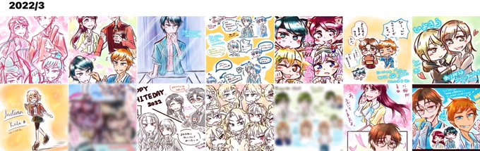 【3月まとめ🌸】 14枚。今月はカラーでクオリティー高く頑張って描けてて良かったです☺️また色んなよその子さんも描けて大満足です💕 たまってるネタやラフをもうちょっと消化できたら言うことなしですね😅 #今月描いた絵を晒そう #桜夏秋冬