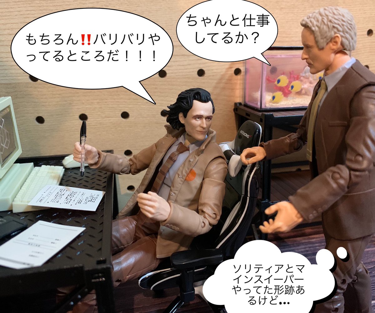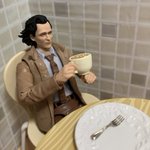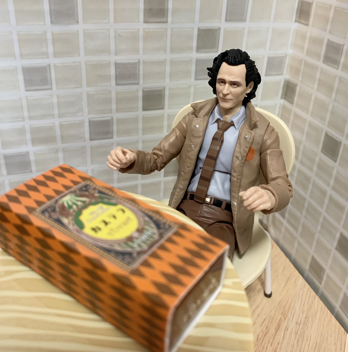 Loki & mobius start to share housing🏠 ロキちゃんとメビさん、シェアハウス始めました! 新居への引越し作業が一段落してダイニングキッチンでひと息つく2人。 足元ではルンバちゃんが頑張ってます。 #MarvelLegends #actionfigure #loki #LokiSeries #夜のフィギュア撮影会