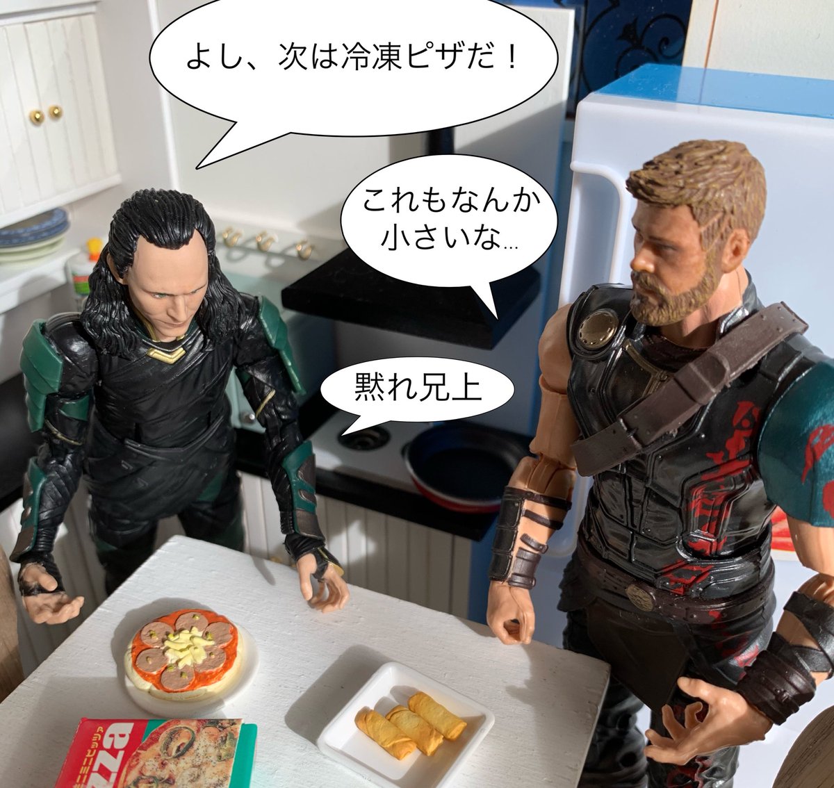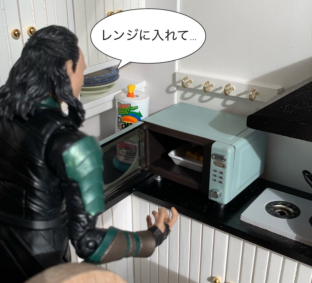 ⚡️🐍ソーロキ、レンジを手に入れる 3/3 ともあれ、なんとかレンジを使いこなせたロキちゃん。 お料理のレパートリー広がるといいね😊 #オモ写 #夜のフィギュア撮影会 #フィギュア撮影友の会