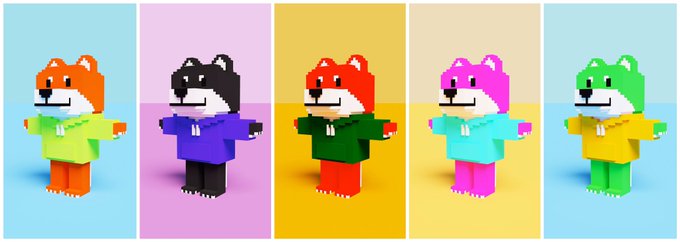 パーカーを着たおしゃれな【 #VOXSHIBA 】 カラーは5色です🌈 OpenSeaでチェック! 後ろも作り込んでいるのでアバターにしたい! ❤opensea.io/collection/wan…❤ #animal_friends #NFT #NFTs #NFTart #NFTartist #SHIBAINU #柴犬 #しばいぬ #voxel #voxelart #pixcelart #Metaverse #メタバース