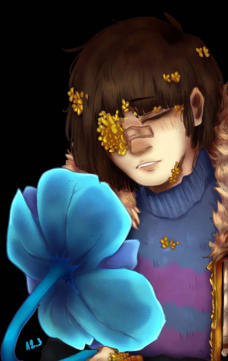 Holi shit i found a great brush againt . It did like 30% of my work LMAO #medibang #flowerfell #undertale #frisk #echoflowerfell #blue #echoflower #redraw