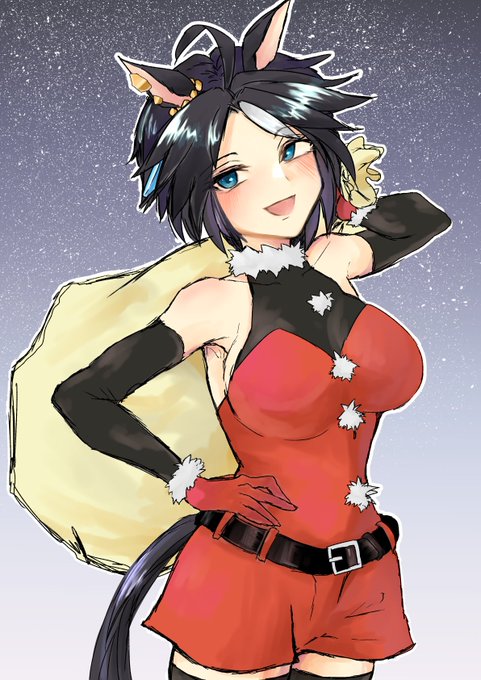 「どうしてみんなの欲しいものが分かるのかって? ……ふふ♪ どうしてだろうね、ポニーちゃん♪」 #ウマ娘 #フジキセキ の サンタクロース!