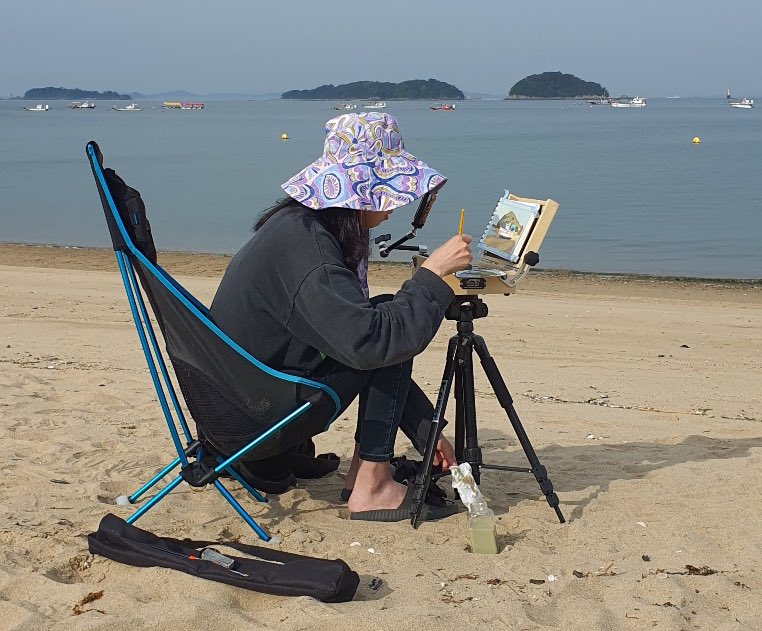 내가 상상했던 야외에서 그림그리기 <<<>>>>현실은 짐가방 양쪽으로 이고지고 그리고 벌레들과의 싸움.. 로망은 로망일뿐🥹