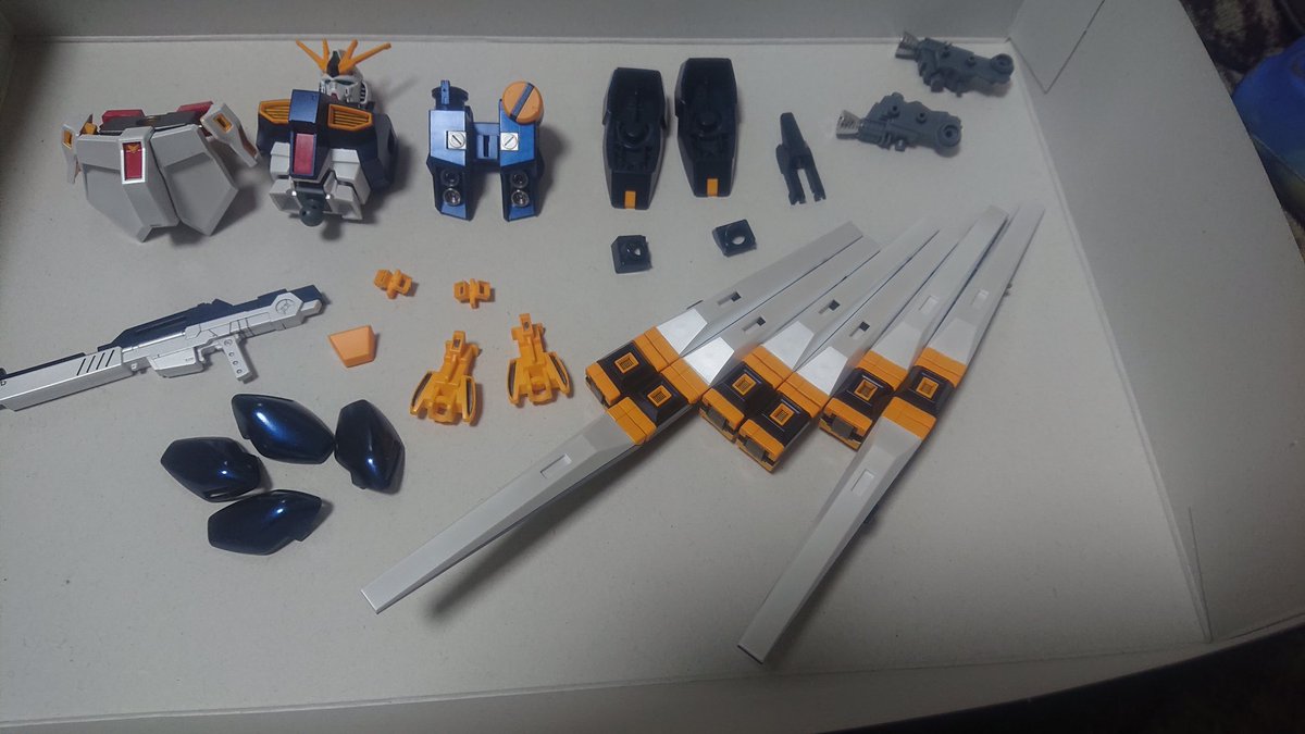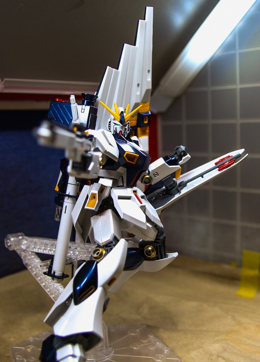#ガンプラの画像貼るとRTされると聞いて #ガンプラ好きと繋がりたい EG ニューガンダム完成です! ニューバイパーバズーカおよび フィンファンネルは積みHGνガンダムから作成。 今回は塗装も施しました😃👍