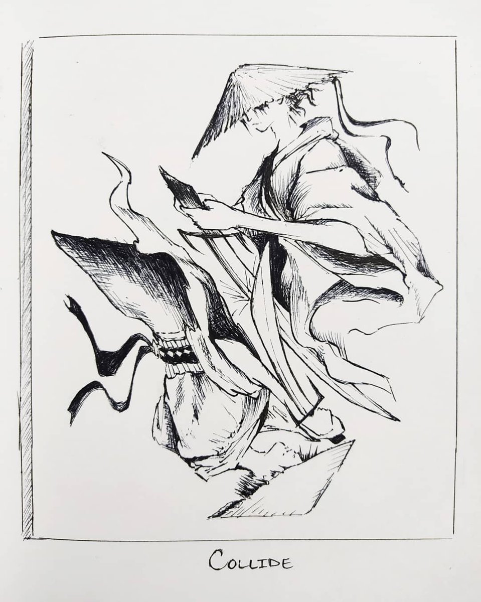 Collide. Dudes, I totally forgot to post here xD #inktober2021 #inktober #art #comic #manga #mangaart #sword #Samurai #doodle #inkart #sketch #ArtistOnTwitter #conceptart #fineart #story #inktoberprompts #inking #linework #contemporaryart #seinen #chainsawman #surrealism #edo