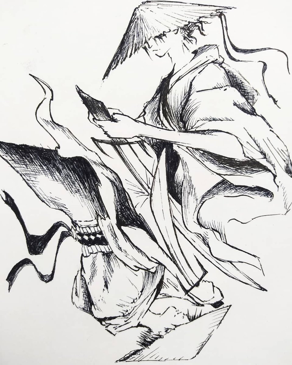 Fan. My love for floaty things knows no bounds. Especially fabric. #inktober2021 #inktober #art #modernart #woman #comic #manga #mangaart #donghua #daoism #cultivation #Spirituality #doodle #inkart #sketch #ArtistOnTwitter #conceptart #fineart #contemporaryart #surrealism