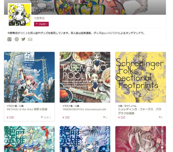 frontierpub.booth.pm 自分のboothで過去同人誌を自家通販してます。「パラグラフの迷路」「TABEMONOPOOL international edit」「漣折々日誌」はいずれも4冊程度で、おそらく物理本を買えるファイナル機会となります。チェックしてみてね。