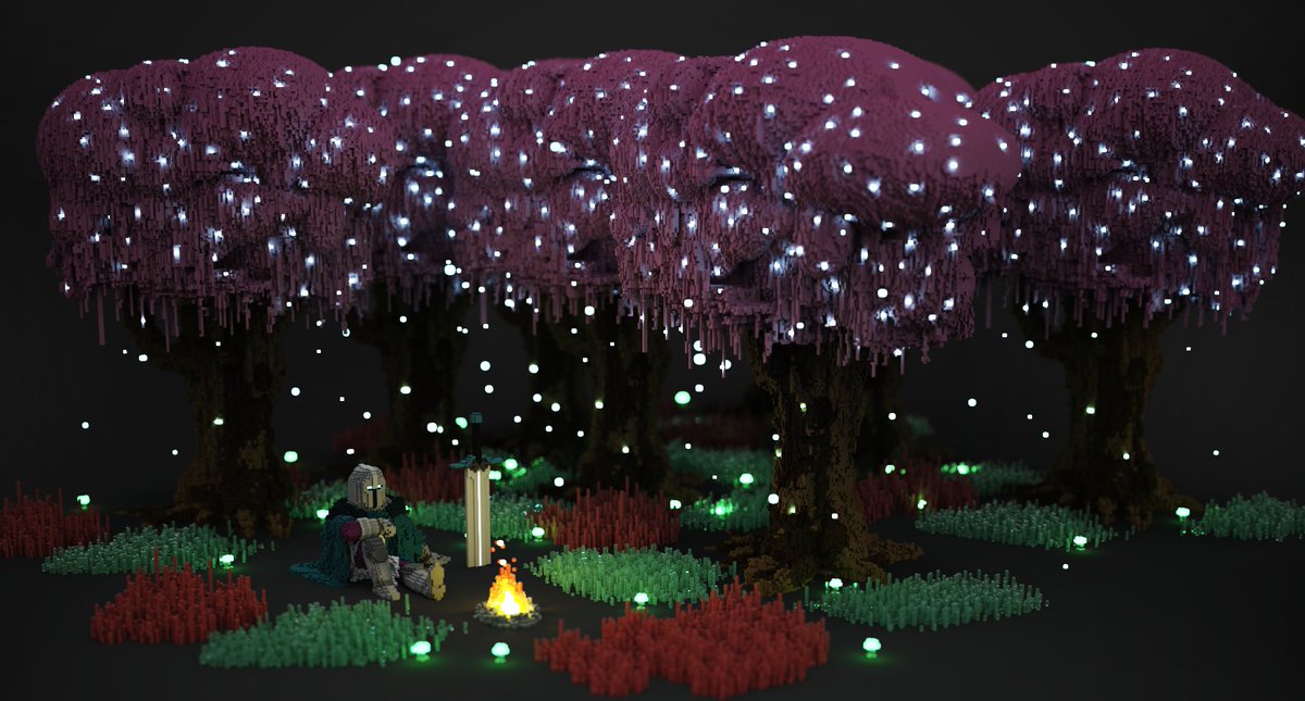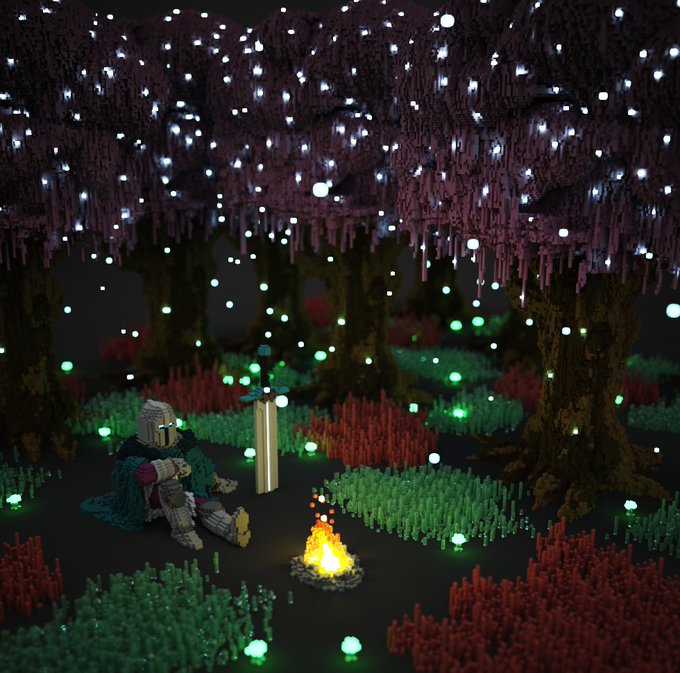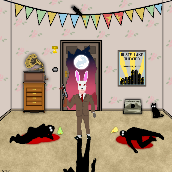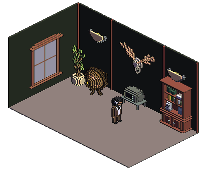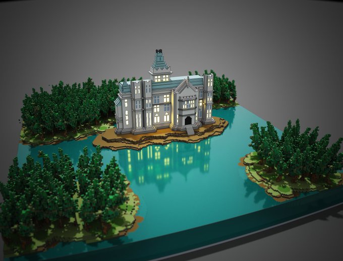 the Hotel after adding sky background i painted by myself btw ^^ #Rustylake #voxelart #RustyLakeHotel
