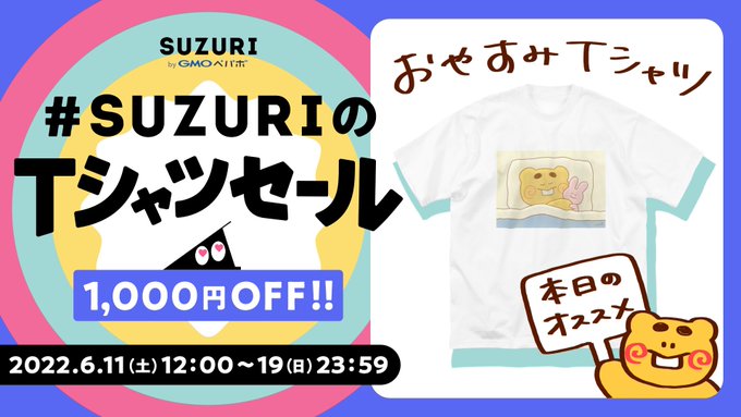 【#SUZURIのTシャツセール】 本日のオススメ おやすみTシャツ💤 バックプリントver.もあります◎ ▼対象アイテムと値引き額 半袖Tシャツ9種が1点につき1,000円引き ▼期間 2022.6/11(土)12:00〜6/19(日)23:59 ▼セール会場 suzuri.jp/frrk_gyouza/om… #suzuri #suzuriで販売中 #イラスト