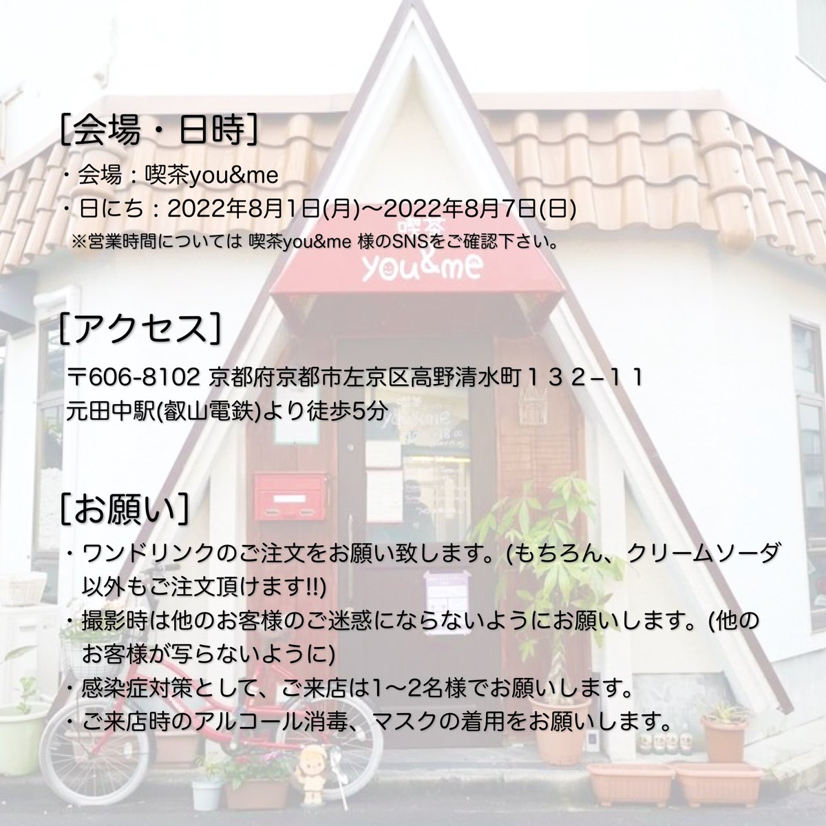 【お知らせ】 🍹#クリームソーダ 展参加します🍹 8/1(月)〜8/7(日)の期間中、『喫茶you&me様(@youandme_yn )』にて、引RTの #イラスト を展示&ポストカード販売いたします! 他クリエイター様の素敵な作品もありますので、是非ご来場いただけますと幸いです🌟 twitter.com/fsgnahitsuji…