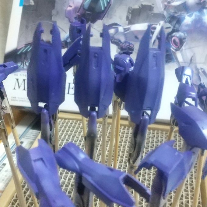 ミカエリス続き 紫は2色重ねてトーンダウン、グレーも良し😃 白、紫はオーバーコート✌️ 明日には完成かな🤔 #ガンプラの画像貼るとRTされると聞いて #ガンプラ好きとつながりたい #水星の魔女 #ミカエリス