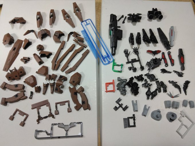 パーツ並べてみた これを組めば完成すると思う が、酔ってるので明日にしよう🤪 今回、仮組してないし、アンテナ尖らせしか手加えてないが、シール無しの2~3層オールペイントだぞい👍 #ガンプラの画像貼るとRTされると聞いて #ガンプラ好きと繋がりたい #ガンダムルブリスソーン