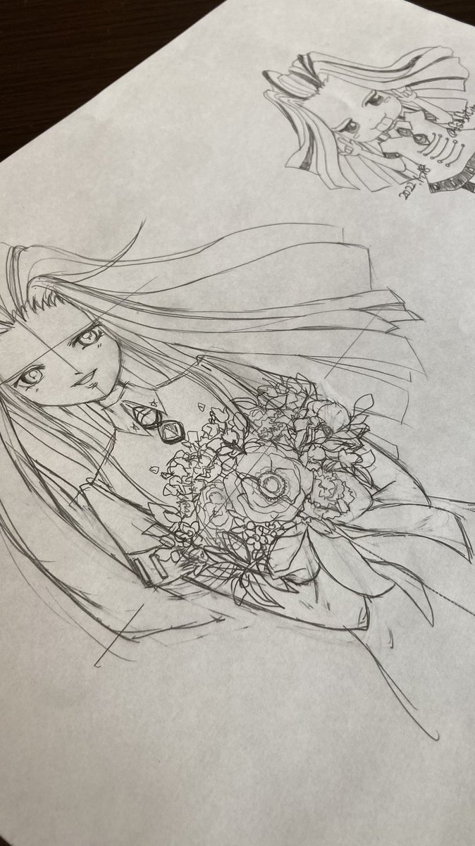 本編を読み返しの途中下書きしたイラスト “ファティマ”ポーター。 彼女も、復活後は衣裳持ちですがファティマの時はエストやビルドと姉妹だったんですよね…、かわいい。スーツは何色なのかな。 今回、線画以降を1時間で描くことと モノクロの出具合を確かめるために描きました。 #FSS_jp #FSS_fanart