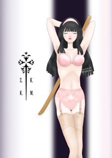 ファイブスター物語セクシー担当 デコースの嫁こと 薔薇の剣聖マドラ・モイライ ラ・ペルラのサイトを参考に描いてみました。 木刀にカチューシャと下着なんてこの方以外にいませんね #FSS_fanart