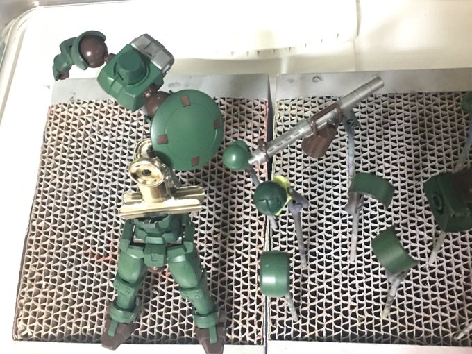 0 1 リーオーNPDパーツ塗装 サフレス ハーマンレッド&モウリーグリーン調色しました。 #クレオス Mr.カラー #HGリーオーNPD #ガンプラ 20/02/05 18:53
